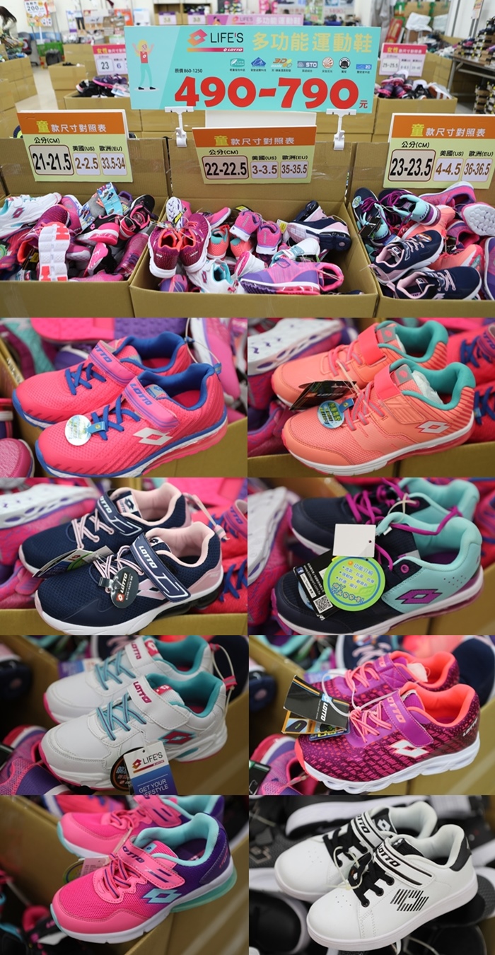 這一區是中大女童的的運動鞋區,大人的腳如果小號一點的話也可以看一下這邊,這邊的運動鞋大多都還有魔鬼氈加強固定,很多款式跟顏色都搭配得很活潑。 |