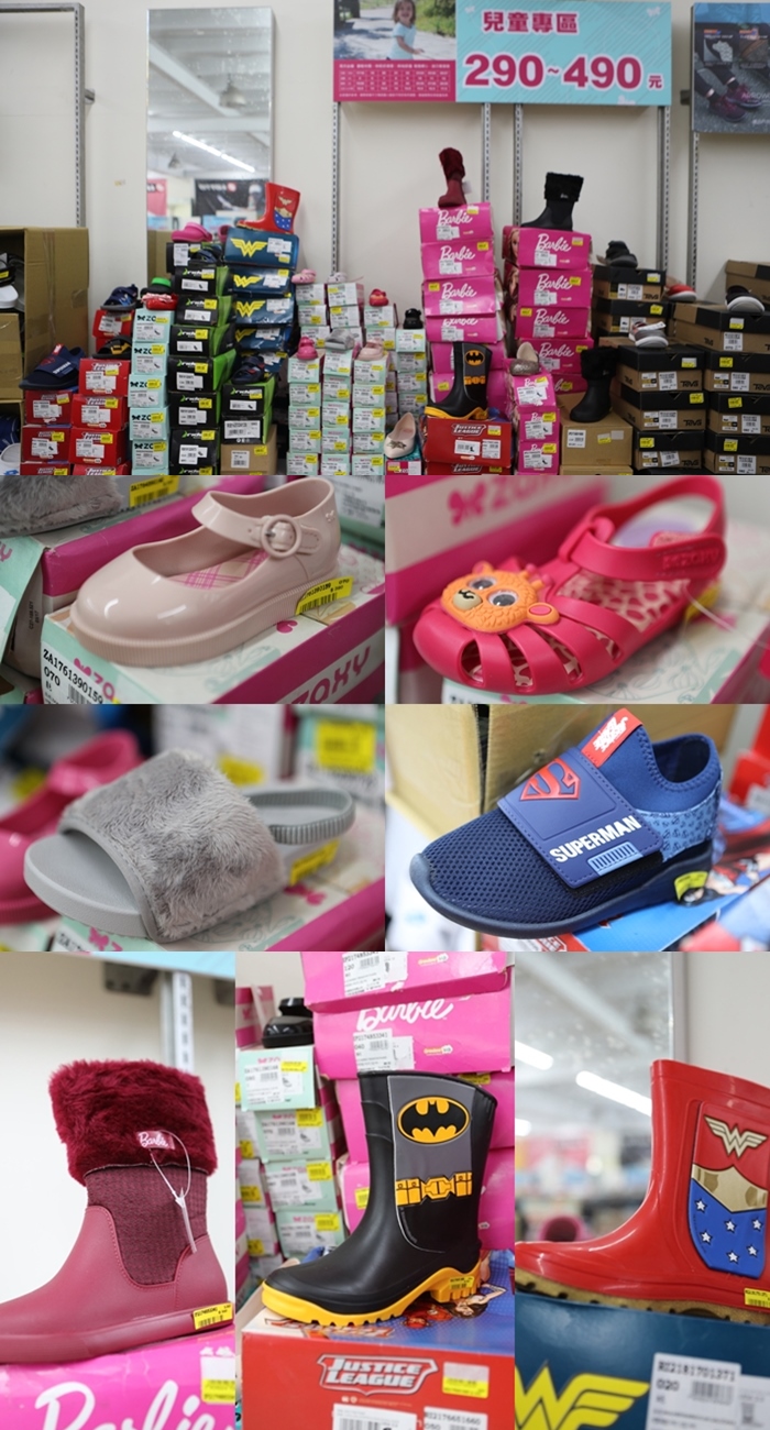 這一區的童鞋是我最喜歡的,每一雙小女童鞋都超可愛,重點這區還有芭比、Ipanema、ZAXY、漫威的兒童雨鞋、涼鞋、淑女鞋等,只要290~490元就可以帶回家,這一區真的必敗! |