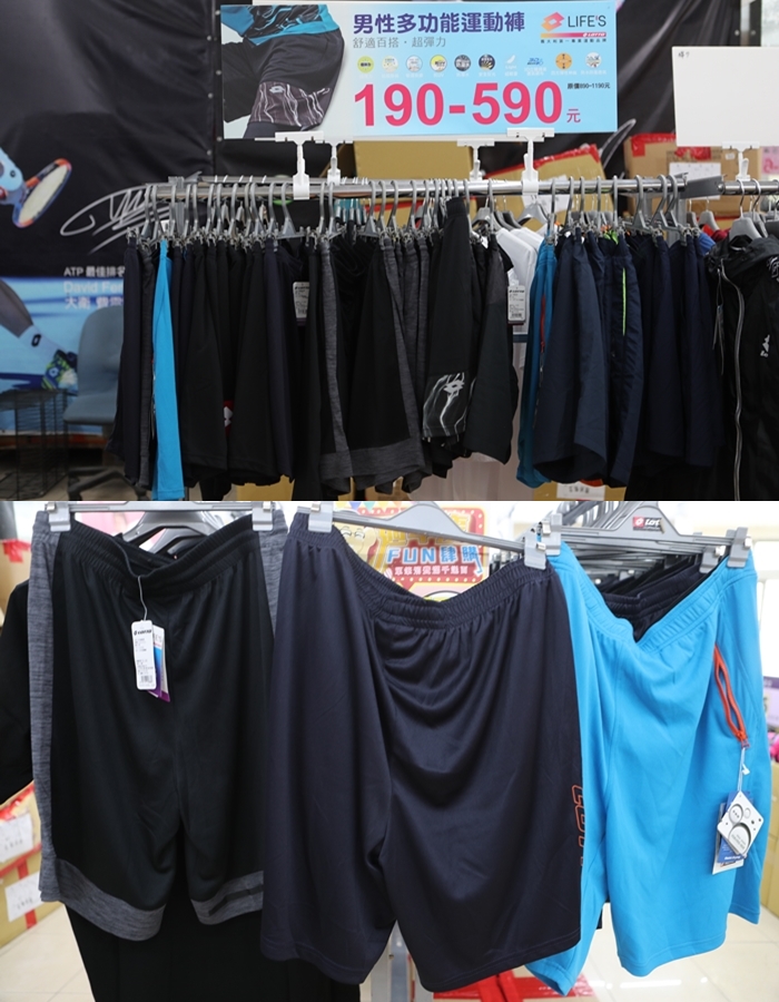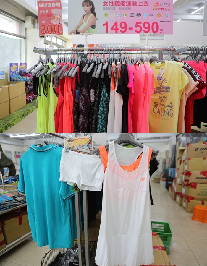 當然也少不了女性的機能上衣,現場還有網球連身全加上內搭褲一整套只要300元,這樣的價格真的是超佛心的價格了,現場的款式也都很好看。 |
