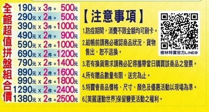 全館超值拼盤組合價,除了上述的優惠活動以外,全館現場不分區域品牌,只要價格是一樣的就可以享有組合價,組合價計價完後可以並用上面其他五項活動,是不是真的太殺了,所以我一開頭就跟大家報告,這是我看過最殺的特賣會! |
