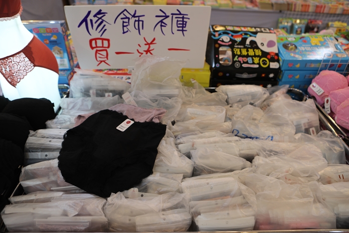 | 搭配成套的小褲通通集中在旁邊的花車,重點是這一場還有滿多款的無痕小褲,這幾年連太妃都很喜歡無痕的小褲,這樣穿比較合身的褲子時就很方便。 |