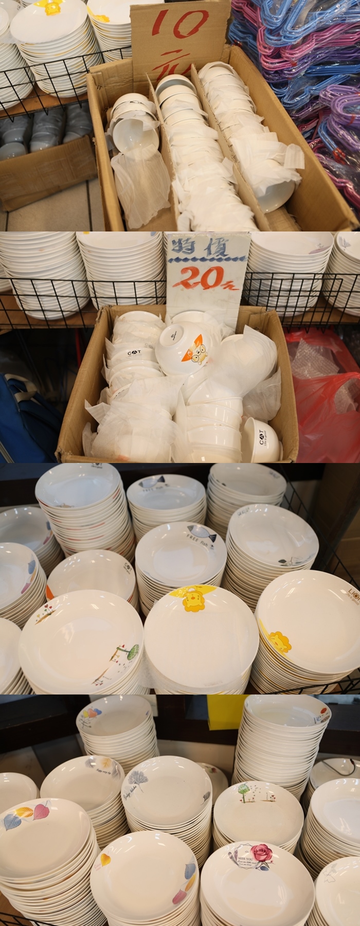 這一區超級好買,全部都是10、20元的陶瓷餐具用品,碗盤通通都應有盡有超級便宜的,盤子上都是可愛動物的圖案,買到賺到的好機會! |