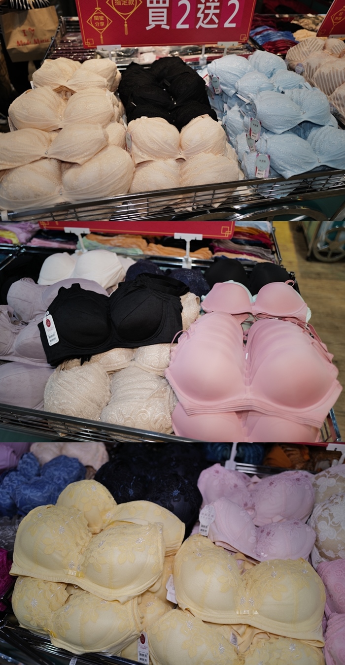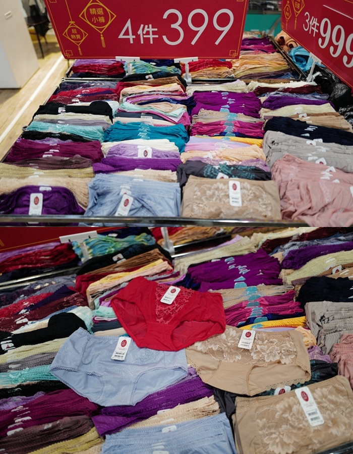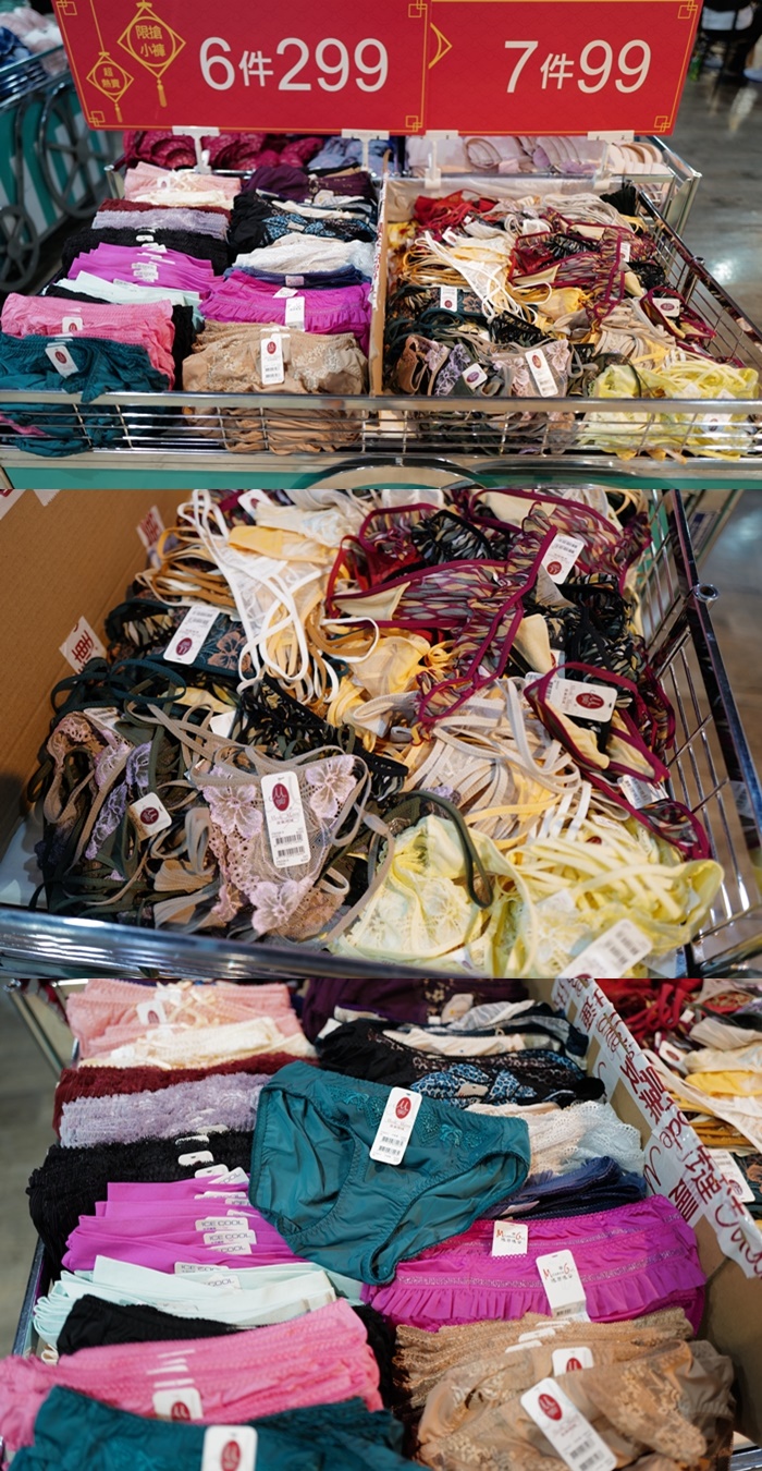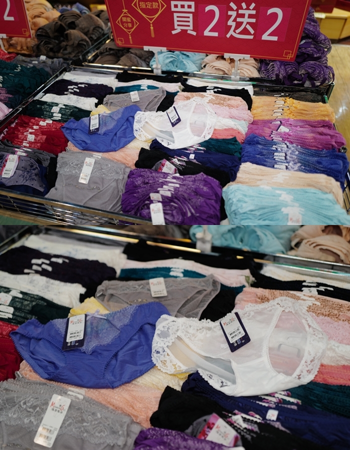 | 買二送二專區的小褲也擺滿了好幾台花車,任何專區的小褲也都可以單買,但是我真的建議不要單買,搭配成套真的划算非常多,如果要單買小褲的話我還比較推薦去另一區的精選小褲區。 |