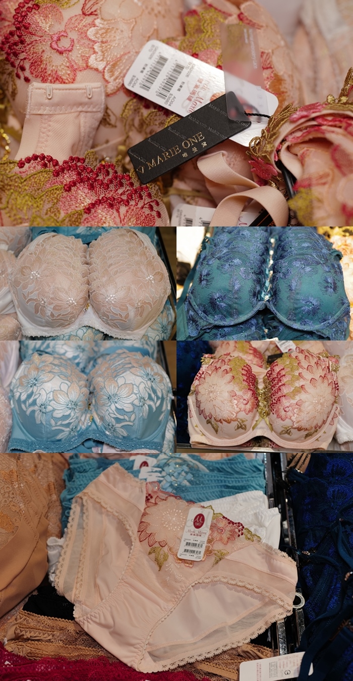 | 這一區很多都是曼黛瑪璉、瑪登瑪朵的暢銷款式,現場的尺寸備的很齊全,如果要速度快一點搶貨的話,建議直接看中喜歡的就找工作人員幫妳翻尺寸最快速,免得自己翻的要死要活的,曼黛瑪璉除了經典的蕾絲款以外,還有很多人喜歡的立體刺繡款,跟坊間的立體刺繡完全不一樣,曼黛瑪璉的立體刺繡非常的挺,不會塌塌軟軟的,質感一整個非常好,設計的款式也都很華麗! |