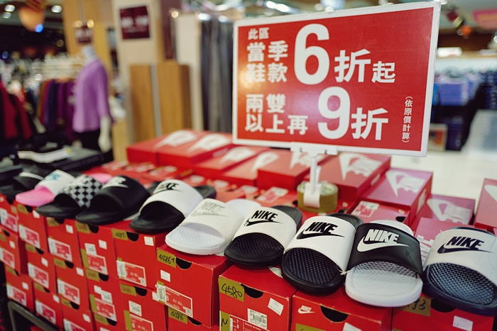 這次全場球鞋主打的就是當季新款球鞋6折起,兩雙以上再打9折,設立不同折數特價區以外,還有專一特價990元區也很好買,年輕人最愛的大拖也通通有出清!