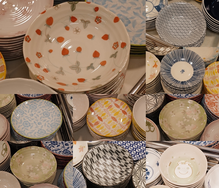 | 這一次裡面的日本碗盤瓷器特賣會商品真的琳琅滿目,當天平日去的時候已經有超多人潮在購買,除了碗盤以外也有很多日本瓷器,根本就是讓喜歡料理的我們一整個超開心的,一整個買到不停,進門建議就先在門口把購物籃拿起來再入內好好挑選。 |
