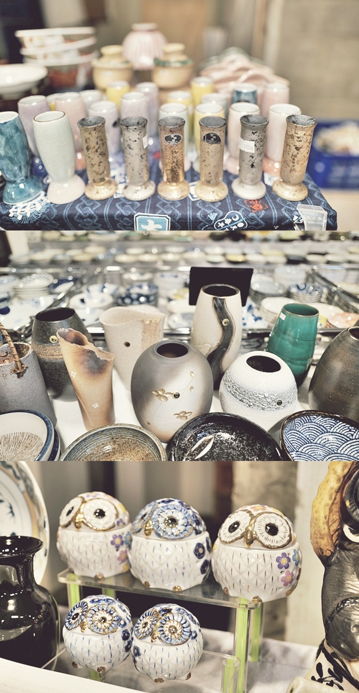 | 日本陶瓷特賣會因為他們加的杯盤組很多,想要讓家裡的文青感上升就靠這些杯壺組了,還有青酒壺跟青酒杯,日本各地有名的窯都可以在這邊找到,有田燒這次也補了一些貨,有田燒真的很推薦來這邊買,因為價位真的跟百貨差很多,每次來這邊拍照我個人都會忍不住敗家下去。 |