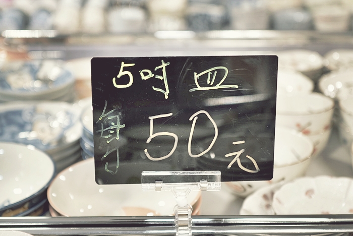 | 除了固定尺寸的碗盤單一價為以外,當然還有許多各式各樣的造型盤可以選擇,造型盤的其他陶瓷餐具的價位都貼在後面,現場超過千碗的日本陶瓷碗盤任你選購,大部分的碗盤都是100~200之間,其他比較特別的也都比百貨公司賣的便宜許多。 |