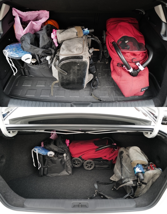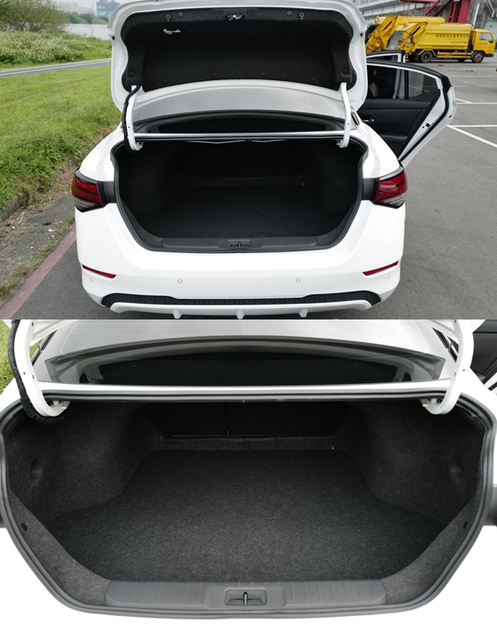 | 上圖是我現在的進口車後車廂,下圖是ALL NEW SENTRA的後車廂,我把我車上固定的物品搬到ALL NEW SENTRA直接對比,真的差超多的。 |