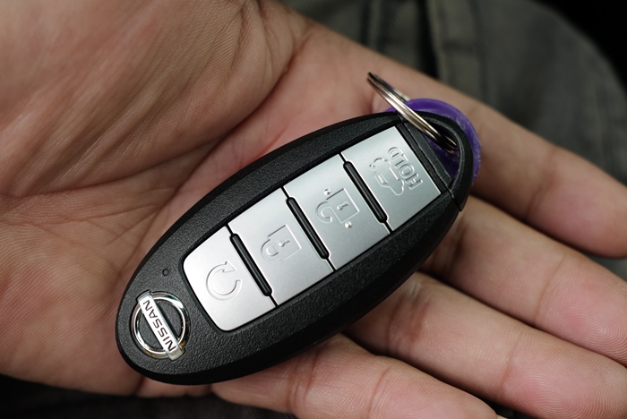 | ALL NEW SENTRA的車鑰匙還滿有質感的,同樣屬於感應式鑰匙。 |