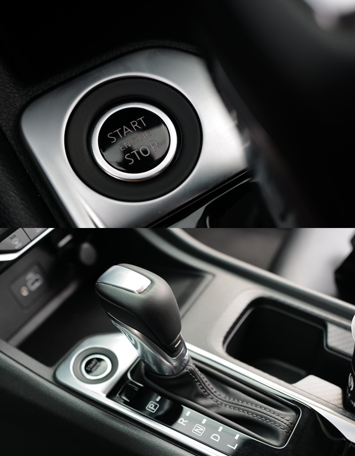 | 中間則是簡潔的排檔桿以及Push Start按鈕,我超愛這次改版後的內裝,質感高水準! |