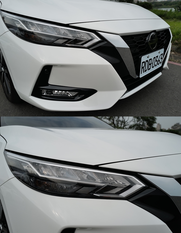 | LED頭燈跟霧燈俐落的造型有像老大哥Altima的風格,尤其我很喜歡大燈殼一路延伸到引擎蓋上方,讓整個車頭看起來更具爆發力。 |