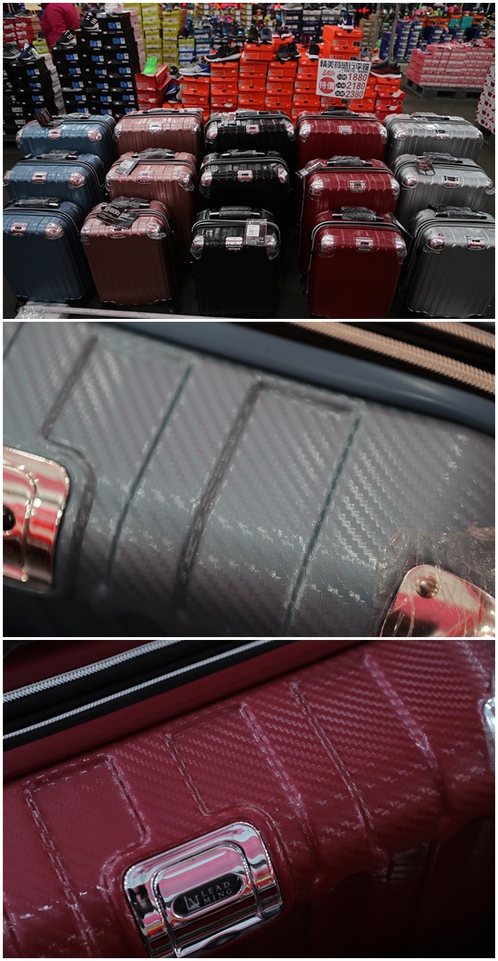 | 男性朋友們的行李箱來了,看看這花紋就大概略知一二了,就是男人會愛的卡夢,我想很多人都不知道卡夢是什麼,卡夢就是carbon fiber的諧音,也就是碳纖維,基本上碳纖維被運用在各種航太科技跟汽車工業還有導彈及各式各樣的科技產業,主要是因為卡夢的高比強度跟高比模量等性能讓商品可以減輕結構重量,如果你跟我一樣買不起卡夢的藍寶堅尼,那買一咖卡夢紋路的四輪行李箱過過乾癮也爽XD |