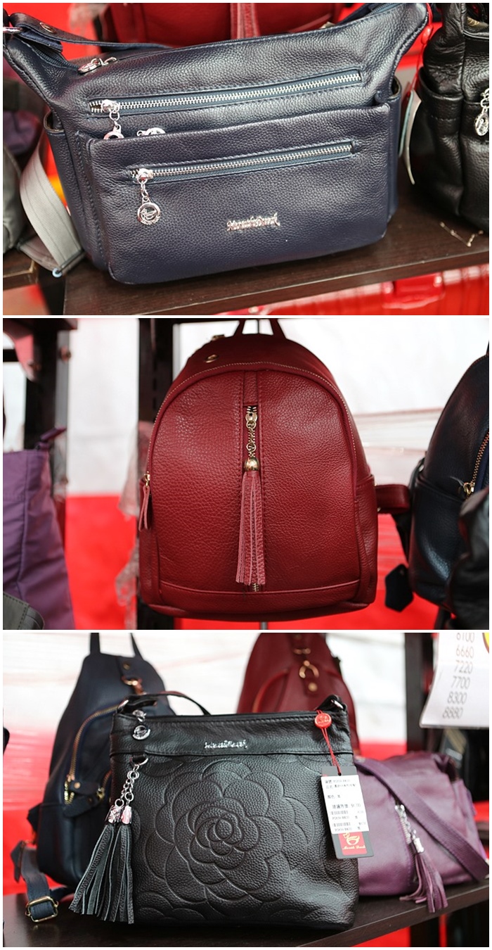 各式各樣的真皮女包讓人愛不釋手,包款的種類也很多,且它們這家廠商的皮質很挺,壓印的水準也相當的好,車工也不怕漏氣,現場看過保證妳會喜歡,拿在手上背上身上絕對就是貴婦一枚,但是妳可以用平民的價格就獲得好包一咖!!! |