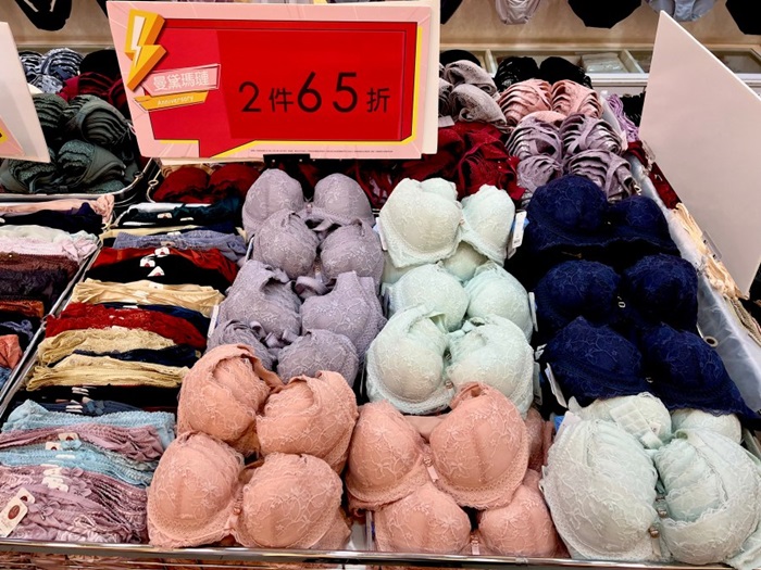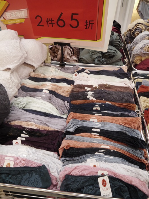 內褲其實算是消耗品,強烈建議大家每幾個月就換一次,穿起來比較健康呢!這一區的小褲選擇也很多,尺寸也都很齊,也都貼心分類尺碼,可以搭配成套也可以混搭或是單買,現場的銷售小姐都很熱心,有需要幫忙搭配成套可以直接跟她們說,因為他們找會速度快很多。 |