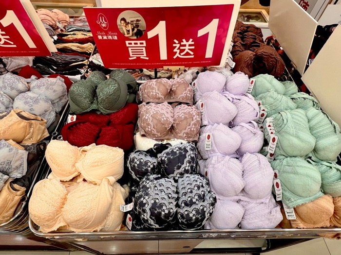 買一送一專區的意思就是全區曼黛瑪璉都可以任挑兩件,取價錢較高的那件,這一區的款式都是比較新款的,尺寸也是最齊全的,熱賣款的內衣都是屬於寬背扣可以更完整的包覆副乳以外,而且很多都是屬於網狀透氣材質,即使夏天穿也不會黏膩不舒服,可以避免胸部跟鋼圈直接接觸而產生勒痕,對女生來說整體的舒適度大增。