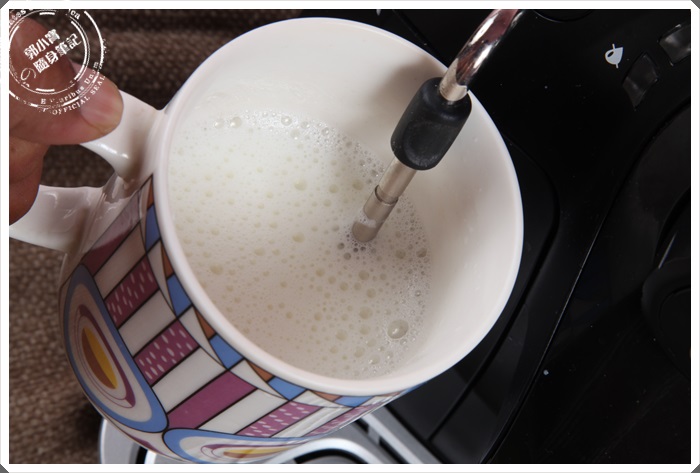 | 接下來工作人員又教寶媽打奶泡,老實說寶媽這一輩子幾乎沒想過它會使用這台那麼高級的全自動咖啡機,這天特別用心呢! |