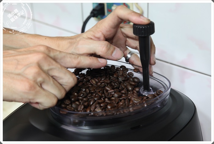 | 雖然說很簡單,但是還是跟大家分享一下操作步驟吧,圓潤可愛的咖啡機上方就是放置咖啡豆的地方,記得將蓋子放好,咖啡放置盤的蓋子密合度非常的好,將咖啡風味緊緊的鎖在裡面,一次倒滿可以煮將近7。8杯咖啡的量。 |