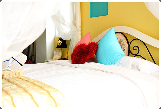 我一定會把女主角拋到床上,開始享用這如夢幻般大床,但是轉頭看到王拉拉,我想還是快拍照工作要緊一一。