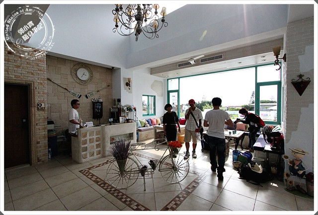 | 打開透明方格大門,印入眼簾的是鄉村可愛風的大廳,因為大廳挑高的原因,加上澎湖的微風,進入白日夢