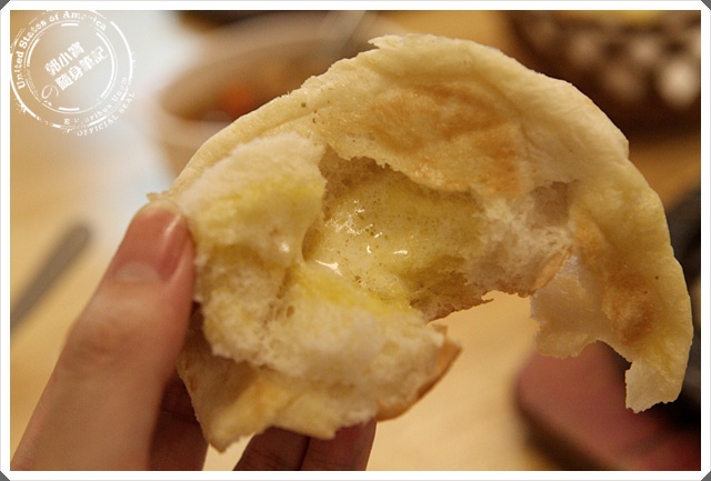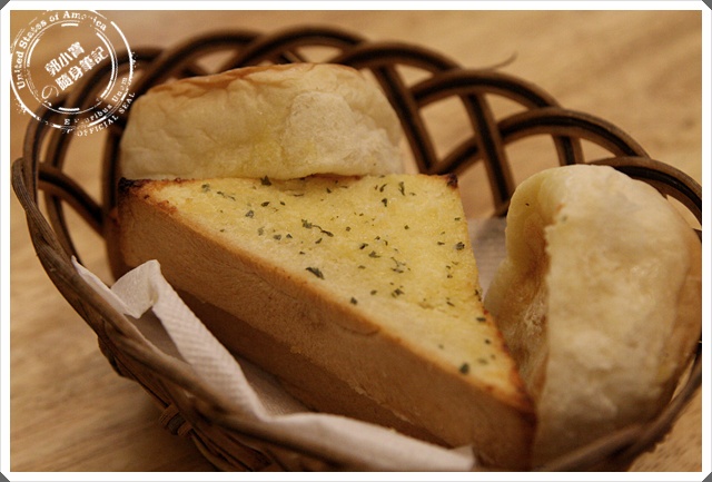 餐包是我喜歡的那種舊式餐包,烤的酥酥的外皮加上理面的奶油,真的很好吃,