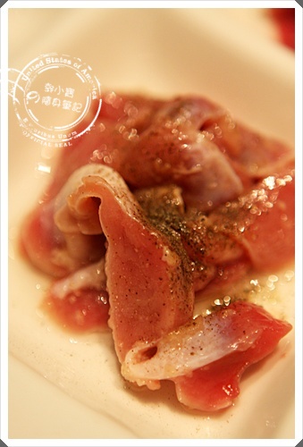 牛五花的油脂就沒有其他兩個品項那麼豐厚,口感也沒差很多啦,一樣是很軟嫩,指示油花鄉沒有很濃,