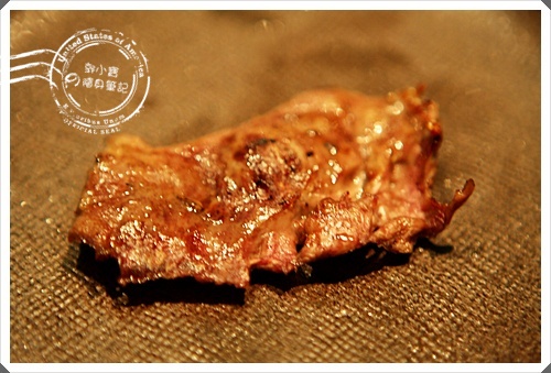 霜降牛肉烤太久肉會很老會變硬,所以微笑人型烤肉機考一下後就拿起來了 (變微笑人型烤肉機了!!)