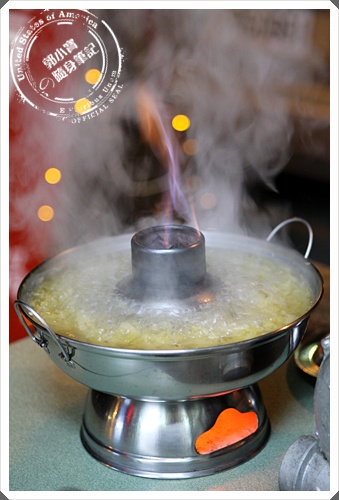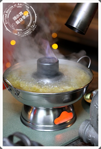 外鍋的湯應該是滾燙了起來,開始冒煙,因為加上蓋子悶熱效果更佳,