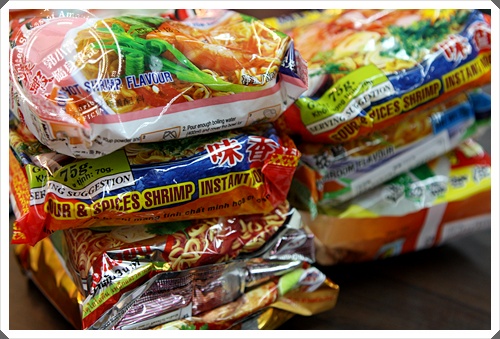就直接去櫃檯那邊泡麵一包一包的拿,