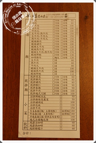 卓越越南美食的菜單非常的清晰明瞭,
