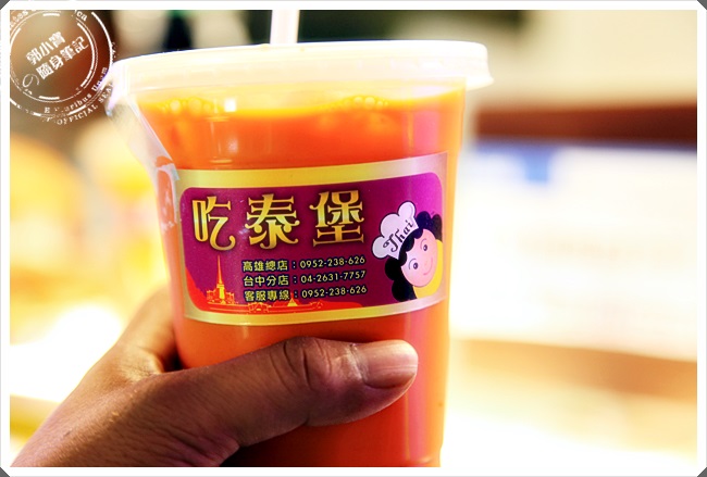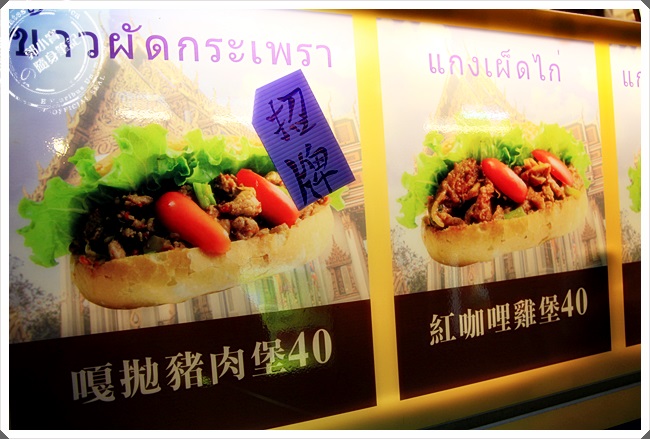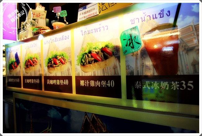 攤位上放著泰式潛艇堡的實際比例,除了有賣泰式潛艇堡以外,還有泰式奶茶,