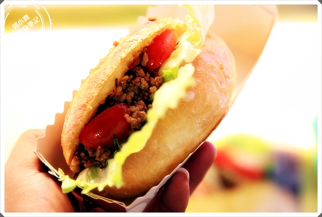 這產品是吃泰堡的明星產品,所以立馬就點上一個來試試看味道,理面的餡料還滿多的。