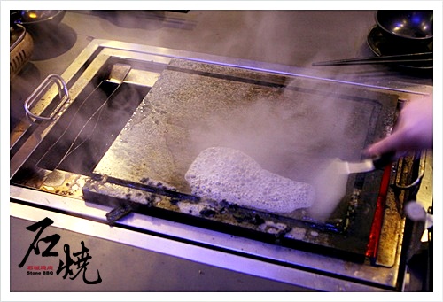 每次下板都會有滋滋作響的聲音,聽了就覺得好餓唷,陣陣白煙還會冒出,倒水下去更是霧茫茫的一片。 |