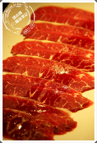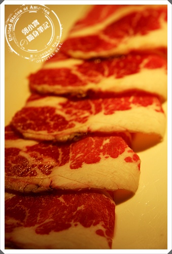 燒肉大將的肉品烤物也是非常非常的多,可是有大部分都有調味過了,看起來油花分布均勻的牛肉,