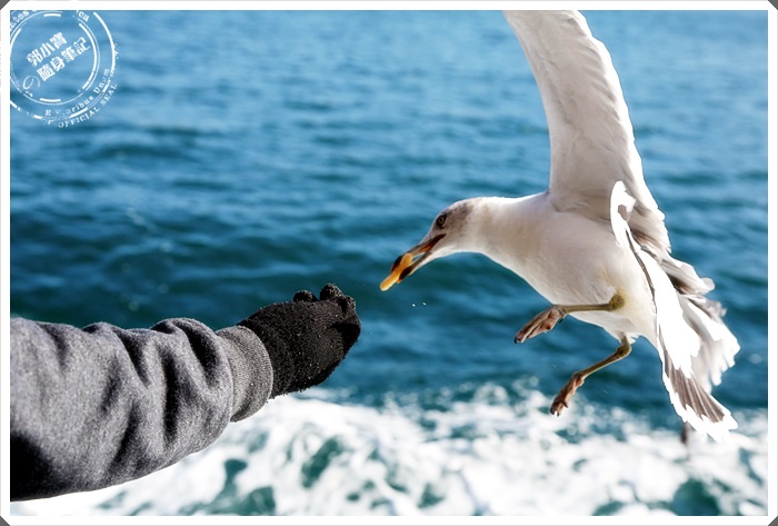 | 可以趁餵食海鷗的時候盡情的近距離拍攝海鷗,海鷗的速度非常的快,蝦味先盡量拿長一點的,不然被她的嘴巴刁到也是會痛的。 |
