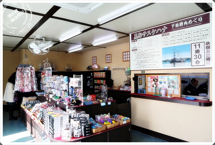 | 搭乘黑船的售票處還有販售其他的伴手禮,重點這邊夏天有冷氣冬天有暖氣,別看太陽公公很賞臉,站在外面久了還是會覺得很冷的>< |