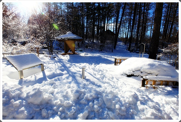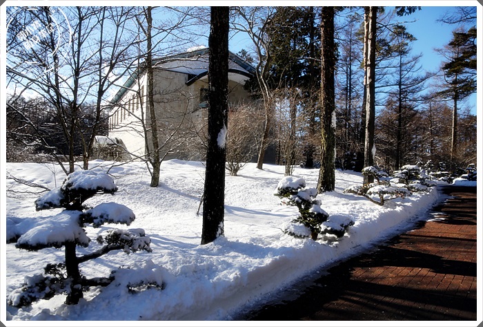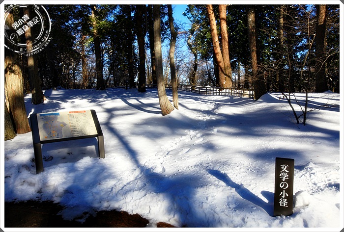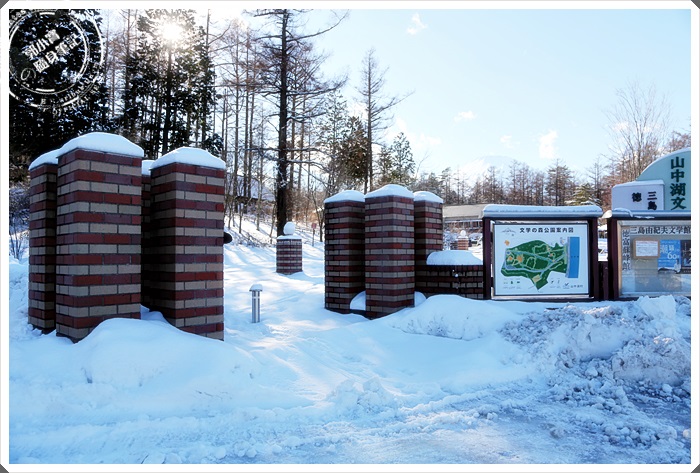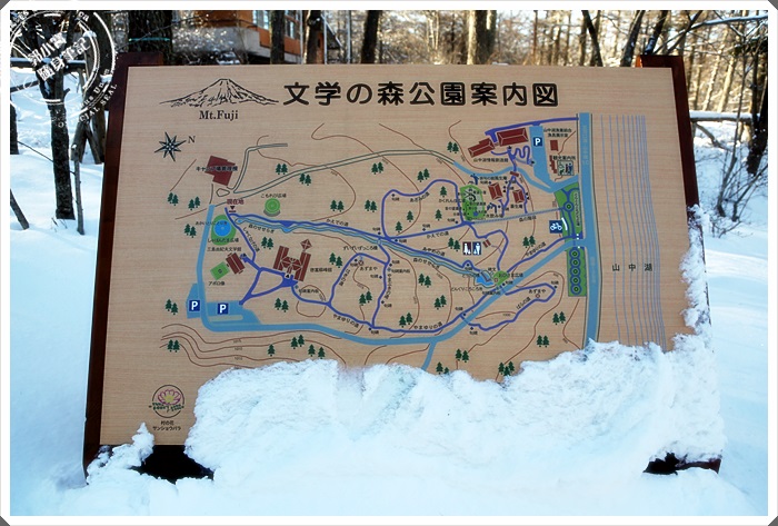山中胡周圍的景點不是很多,主要離旭日丘車站最近的景點就是文學森林了,但是步行到這邊大概還需要10分鐘的食煎,其實在下雪的季節里,大部分看起來都是一樣的,整個地區都附蓋了很多白雪,加上大雪時期很多地方都是沒有開放的,有的室內館也是封閉的,所以其實可以看季節來安排行程,但是我們這次主要是以漫遊為主,所以還是優閒的逛了一下山中湖周遭的景點,我們運氣算是還不錯,來到富士五湖的時間都是屬於雪後的大太陽,溫度比平常還要低一點,中午過後就會飄雪,所以路面不會太濕滑。