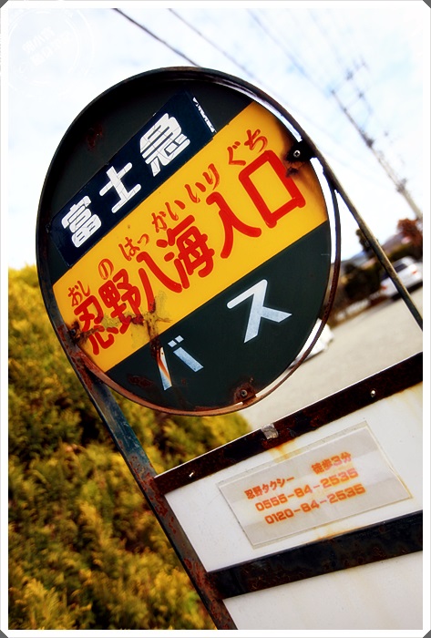 看完上篇的分享就會知道搭乘巴士就幾乎都會經過忍野八海,這地方算是非常具有知名度的觀光地區,我們是在另一個入口下的,如果從這邊下也可以,應該是說忍野八海四周圍的站都可以下,每個站都有各自的小路,但是忍野八海入口的指示牌比較多。