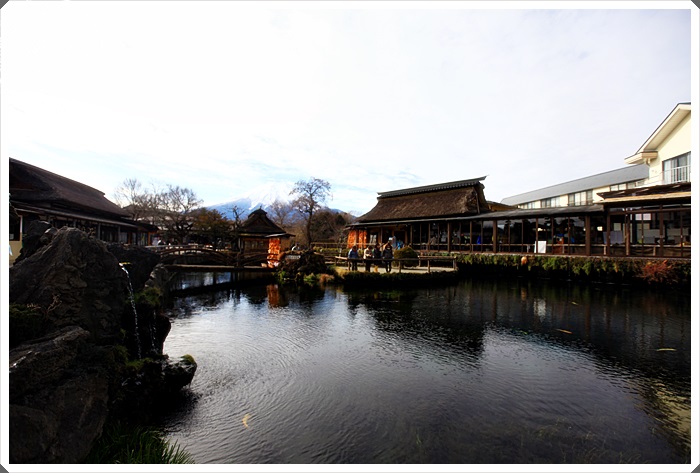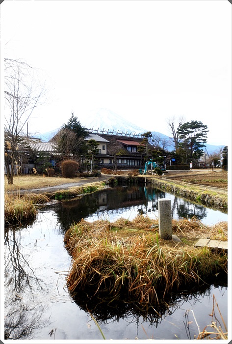 | 如果是想說拍整個大景的話,神之水這池子還是比較漂亮,除了池水夠大以外,還可以將富士山當成背景一起入鏡,池水中還有一個小島根古老的和式建築可以閒逛。 |