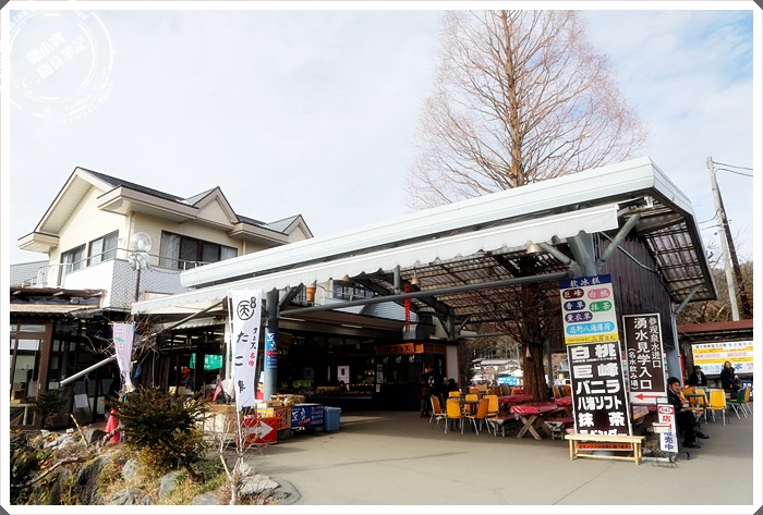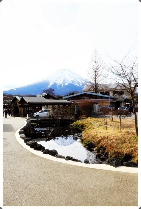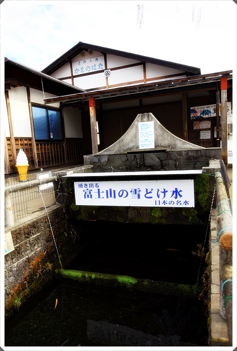 這一個碑是最多人合照的一個,代表著富士山的泉水都是從這邊湧入的,後面的商店在一開門的時候就會湧入很多人潮購買商品。