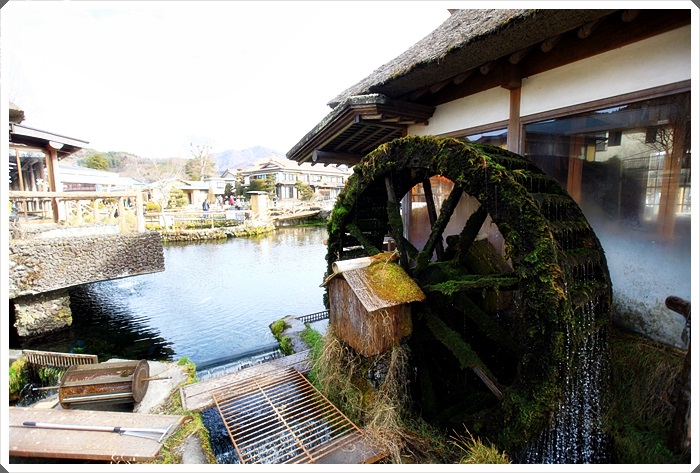 | 這邊其實算式設計成一個獨立園區了,還有幾間古老的建築跟水車,搭配著背後的山林造景,彷彿讓人時光倒退了幾百年歷史,還可以登高到售票口的二樓,一覽整個忍野八海的美麗風光。 |