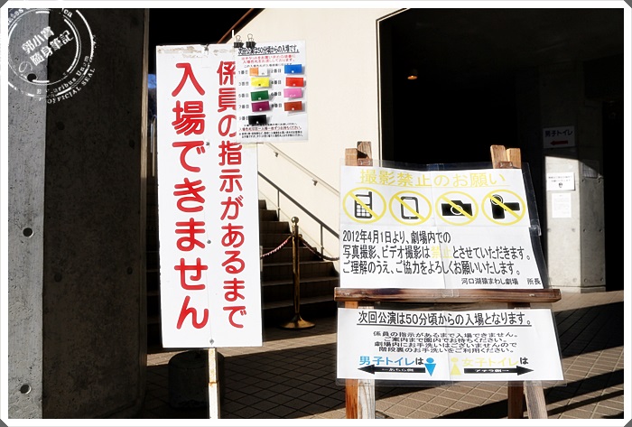 | 近去看表演的時候,禁止講手機跟使用手機網路,也禁止拍照跟錄影,除非有經過工作人員的確認才可以進行這些動作。 |