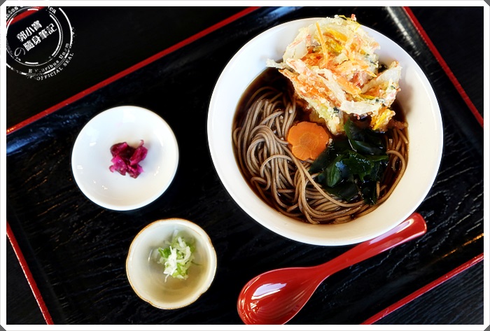 | MO貴人點了一個蔬菜炸物的蕎麥麵,基本上我們兩個對蕎麥麵都沒有很熱愛,但是附近真的沒有任何餐廳了,錯過這一家我們可能連便利超商都看不到半間了。 |
