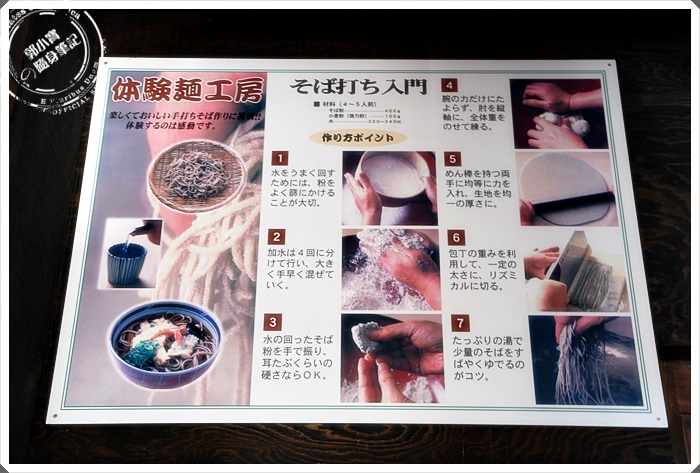 如果你喜歡吃蕎麥麵的話,那不妨可以提早報名來這邊學坐一下蕎麥麵,做完老闆還會當場煮給妳吃,吃下自己親手做的蕎麥麵也是一個不錯的選擇唷!!!!