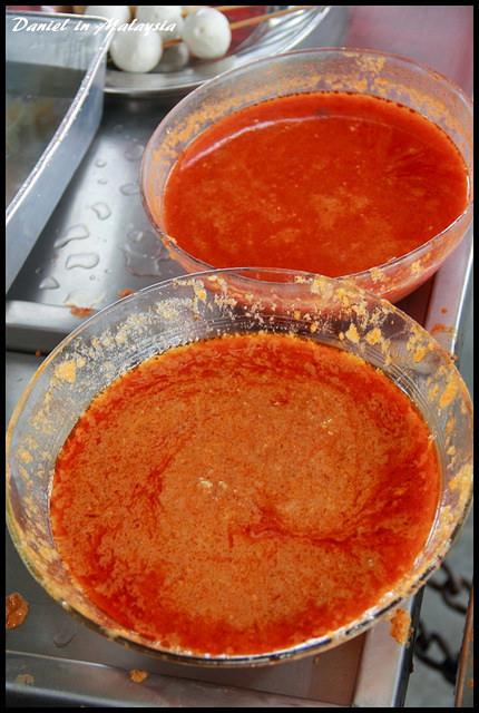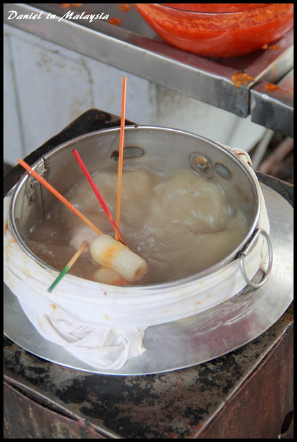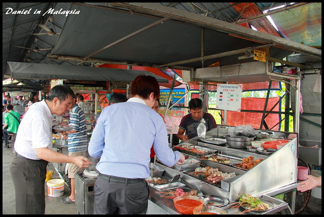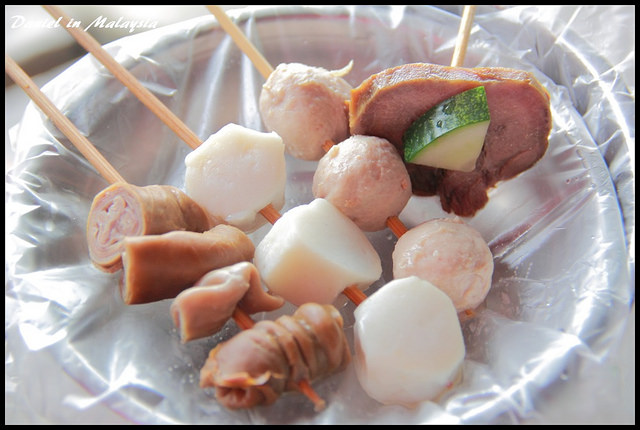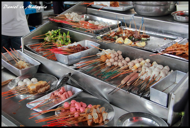| 樂樂,給我第一眼的感覺有點像是涮涮鍋,只是樂樂的配料都是已經用叉子串好然後供顧客任意取用,而且店家也沒座位,因此當顧客比較多的時候,就會看到不少人直接站在店門前吃樂樂,而且吃的不過癮時還會取個好幾輪的食材享用,這種景象在檳城地區我想應該是司空見慣的事情了,但在我們眼中卻是個非常奇特的景象, |