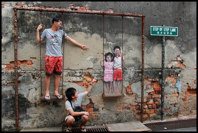 檳城的壁畫最早是由一個立陶宛的藝術家Ernest Zacharevic所繪成,她從2011年開始深入檳城當地的生活之後而畫成許多貼近檳城人的藝術壁畫,讓我對這藝術家敏銳的觀察力十分佩服, |