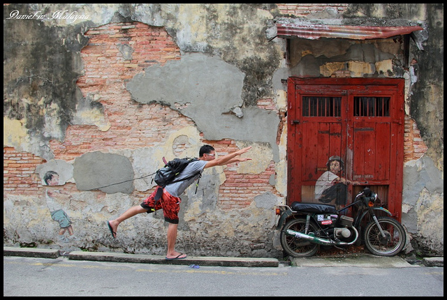 我會推崇這藝術家不是沒有原因,在台灣的藝術創作其實大多都偏向於歐美的設計風格,大多看到的藝術品早就失去了台灣本體的特色,然而這藝術家雖然來自立陶宛,雖不知道他來到檳城多久,但是卻能敏銳的觀察力、深入人群的生活,再加上利用一些已經物品搭配而畫出如此充滿檳城風情的畫作,所以我才會覺得這藝術家很棒,其畫的壁畫也非常富有生命力, |