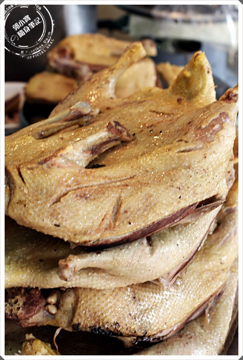 | 台子上擺滿了看起來就讓人流口水的鴨肉疊的超高,老闆非常俐落的一直在處理這台子上的鴨肉。 |
