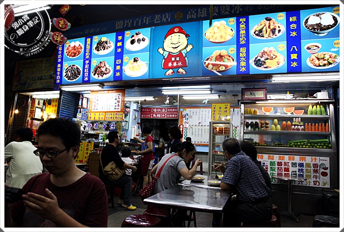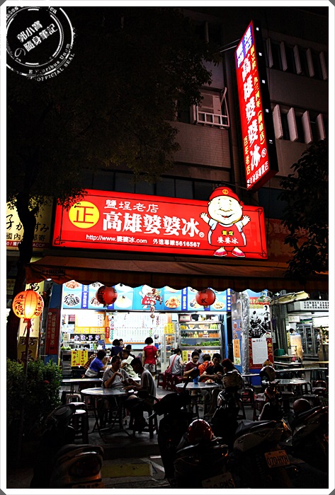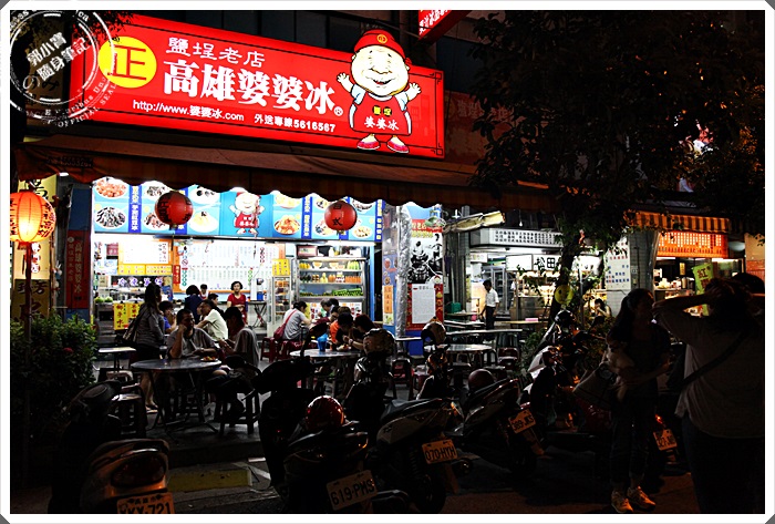 | 在鹽埕區七賢路上,幾乎都是婆字被的冰店,有婆婆冰、阿婆冰、阿婆仔冰等三大家,到底哪一家是創始者,幾乎都是各說各話也各有支持者,老實說小寶我個人也沒有特別偏好哪一家,對我來說其實都差不多,價位跟裝潢還有內容的差別,但是這一家市場上的婆婆冰,似乎是比較多人推薦的一家,可能是因為在市場裡面加上看起來比較舊的樣子,所以比較被大家喜歡,大紅色的招牌相當的好認,一眼就認出來了,婆婆的造型還滿像財神爺的,每次晚上經過的時候,其實這三間店面都還滿多人的。 |