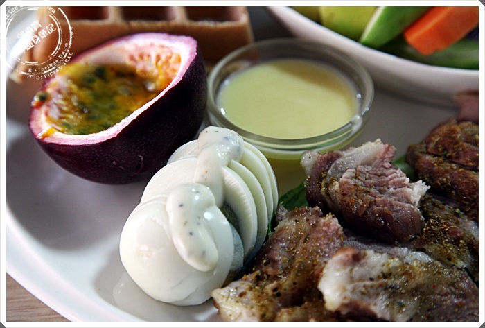 | 百香果相當的貼心已經幫你挖好果肉了,吃起來的酸甜滋味相當迷人,把他淋上鬆餅一起吃,好特別的滋味! |
